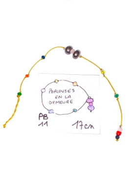 Bracelet sur fil doré, 2 perles d'eau douce de Birmanie noires, perles de rocailles - Taille tour de bras 17cm -